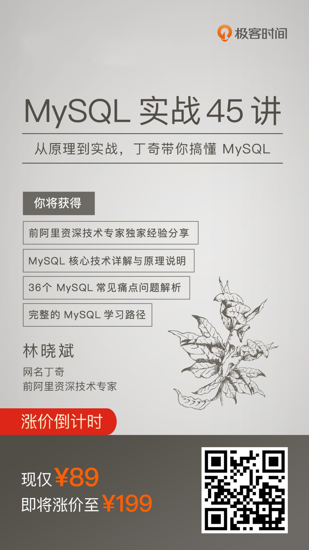 那会儿,也没少在网上找资料,虽说有所收获,但内容大多脱离真实的软件开发,看的时候各种明白,上手实操就原形毕露了。后来刷微博,看到诸霸转发了数据库大佬——丁奇的专栏《MySQL 实战 45 讲》。