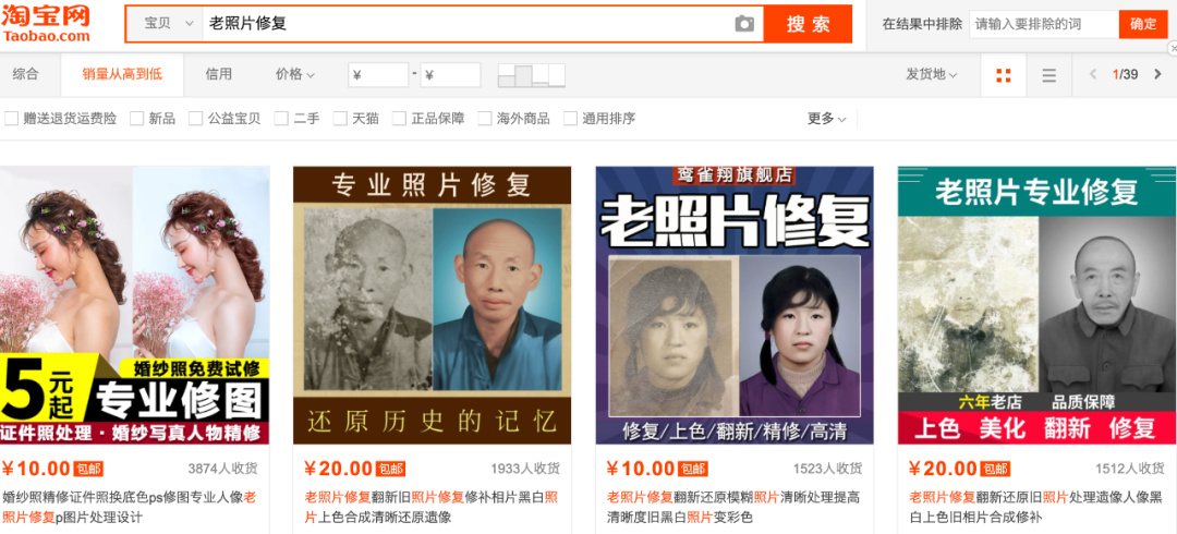 写到这里,小编在淘宝搜了一下「老照片修复」,这...商机啊!