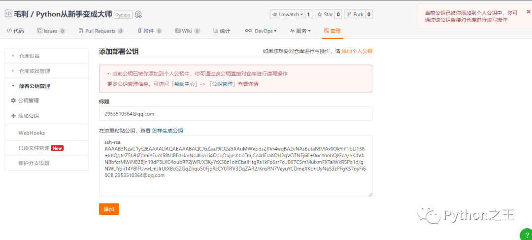 部署公钥管理是针对不是你的项目而已,由于项目是我,做这个是没有任何意义的。
