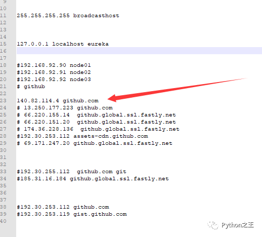 Windows 系统位于 C:\Windows\System32\drivers\etc\ Android(安卓)系统hosts位于 /etc/ Mac(苹果电脑)系统hosts位于 /etc/ iPhone(iOS)系统hosts位于 /etc/ Linux系统hosts位于 /etc/我这里使用Notepad++打开的,填写的是以前的hosts