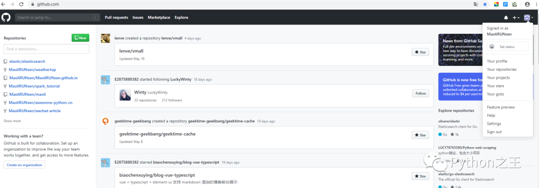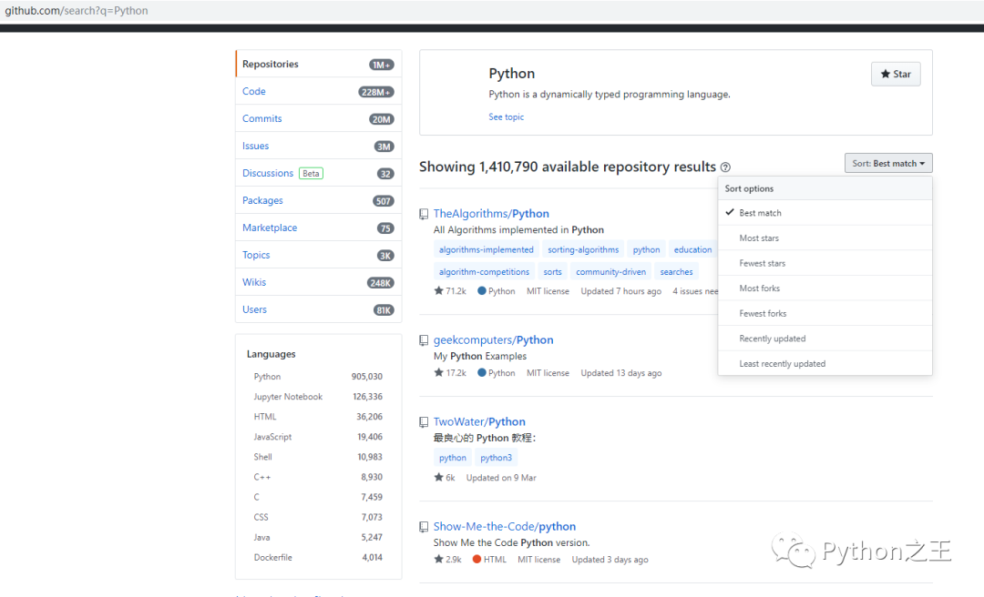 11、如何白嫖别人的资料 Github上有很多开源免费的资料,很多人为了Star就开源了很多学习资料,在我国都是分享学习资料比较多,比如我搜索Python