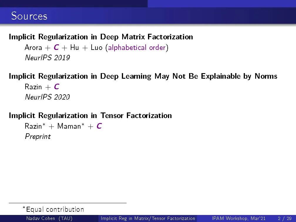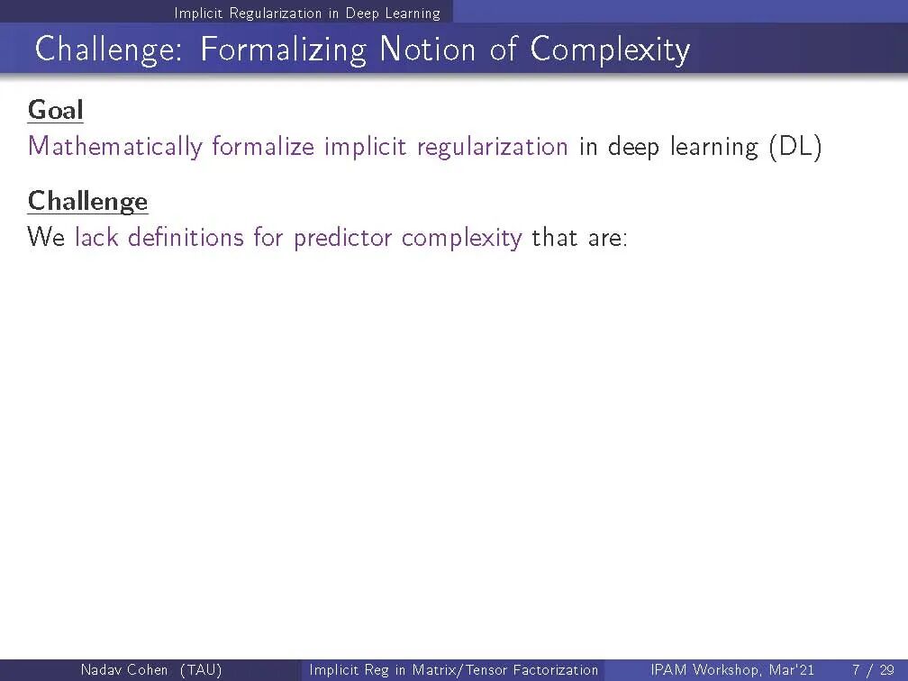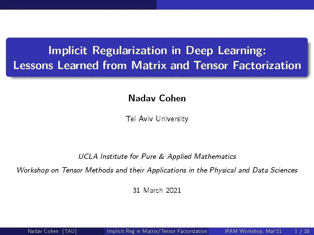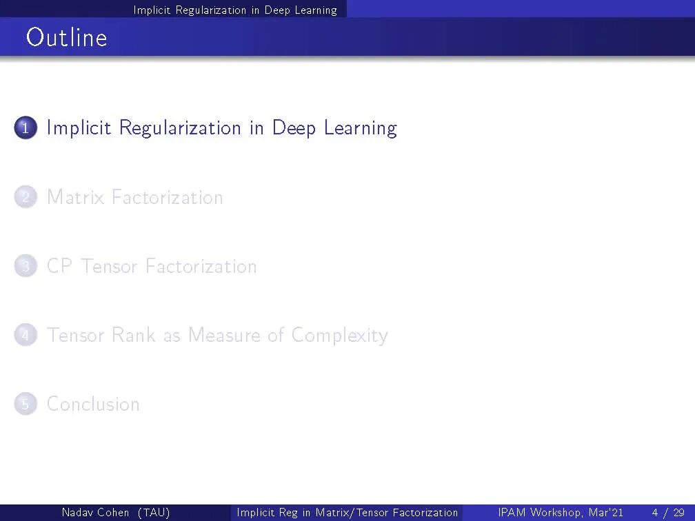 1 深度学习隐式正则化 Implicit Regularization in Deep Learning 2 矩阵分解 Matrix Factorization 3 CP张量分解 CP Tensor Factorization 4 张量秩 Tensor Rank as Measure of Complexity
