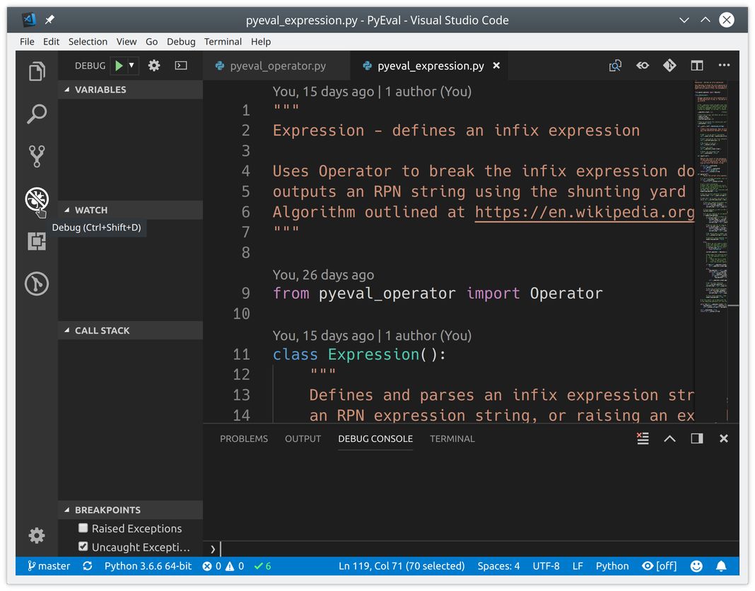为了说明 Visual Studio Code 以项目为中心的特征,我们现在开始在 Python 中重新创建调度场算法作为方程式评估库。相应 GitHub 地址:https://github.com/JFincher42/PyEval。