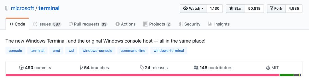 在 MS Terminal 开源后,GitHub 的 Star 量增长得非常快,目前已经超过了 5 万。这足以说明这个项目非常受关注,在社区的开源改进下,这个工具一定挺好用。