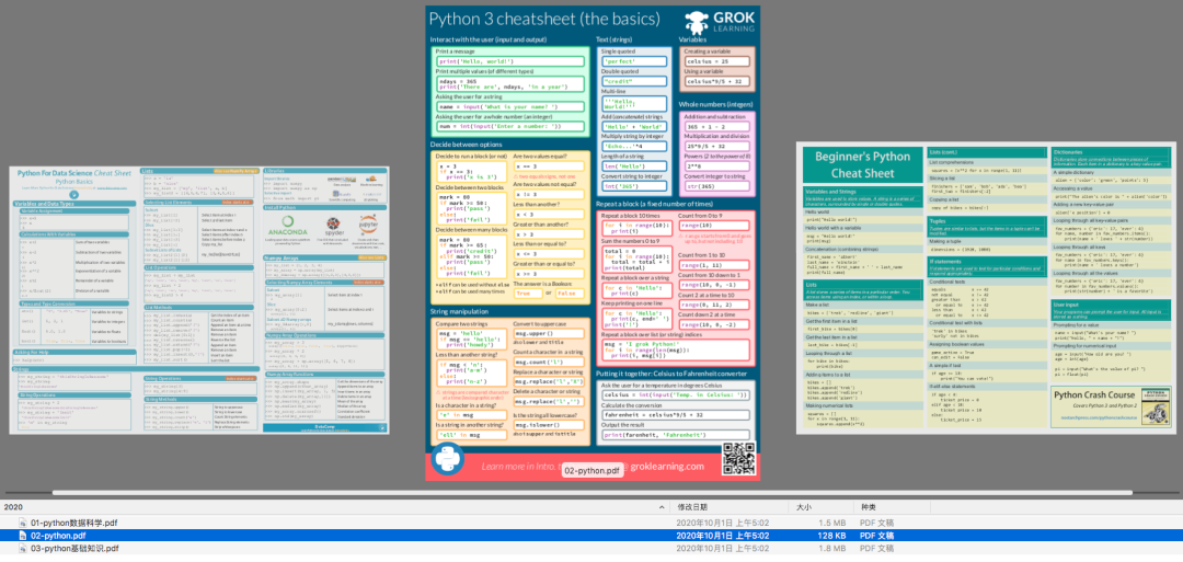 此外,小F还私藏了3份Python速查表。每一张表都会让你受益良多,非常实用~