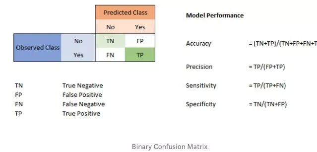 从混淆矩阵,我们能计算出准确率、精度、召回率和F-1值。