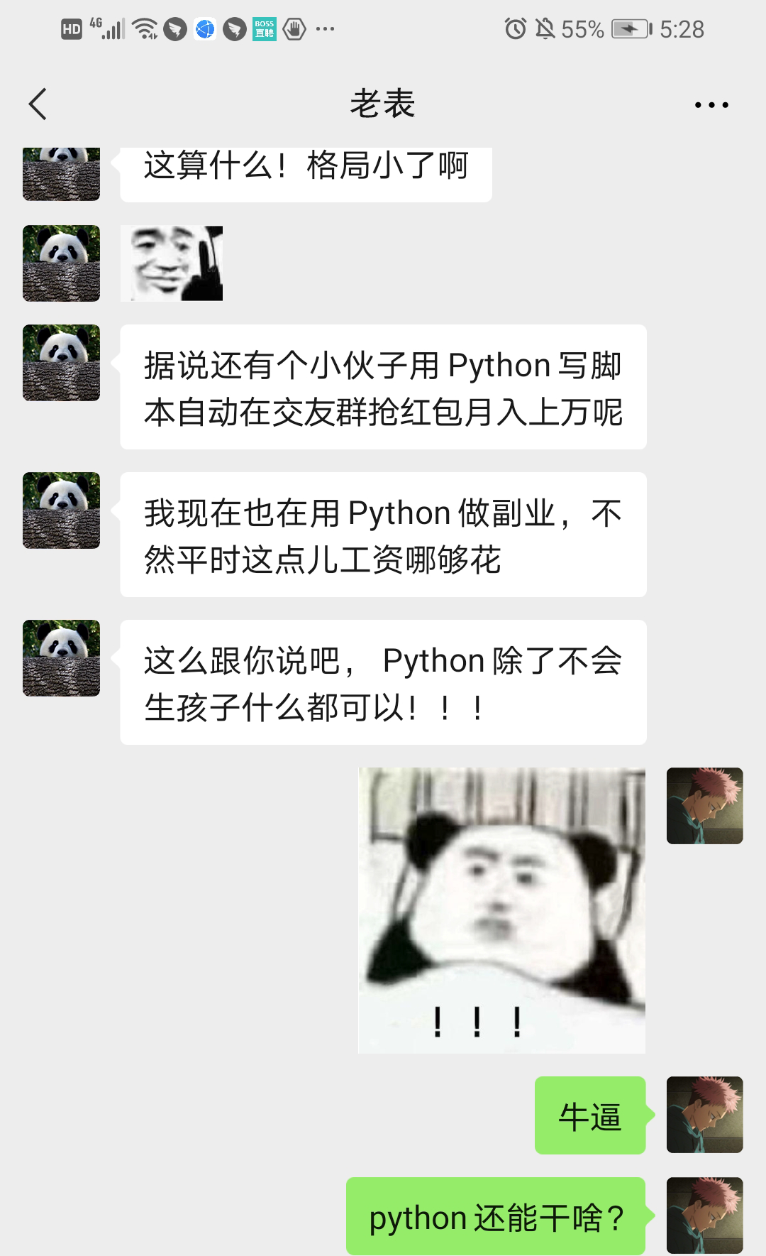 总而言之,老表说Python功能非常强大,力劝我也学一学。