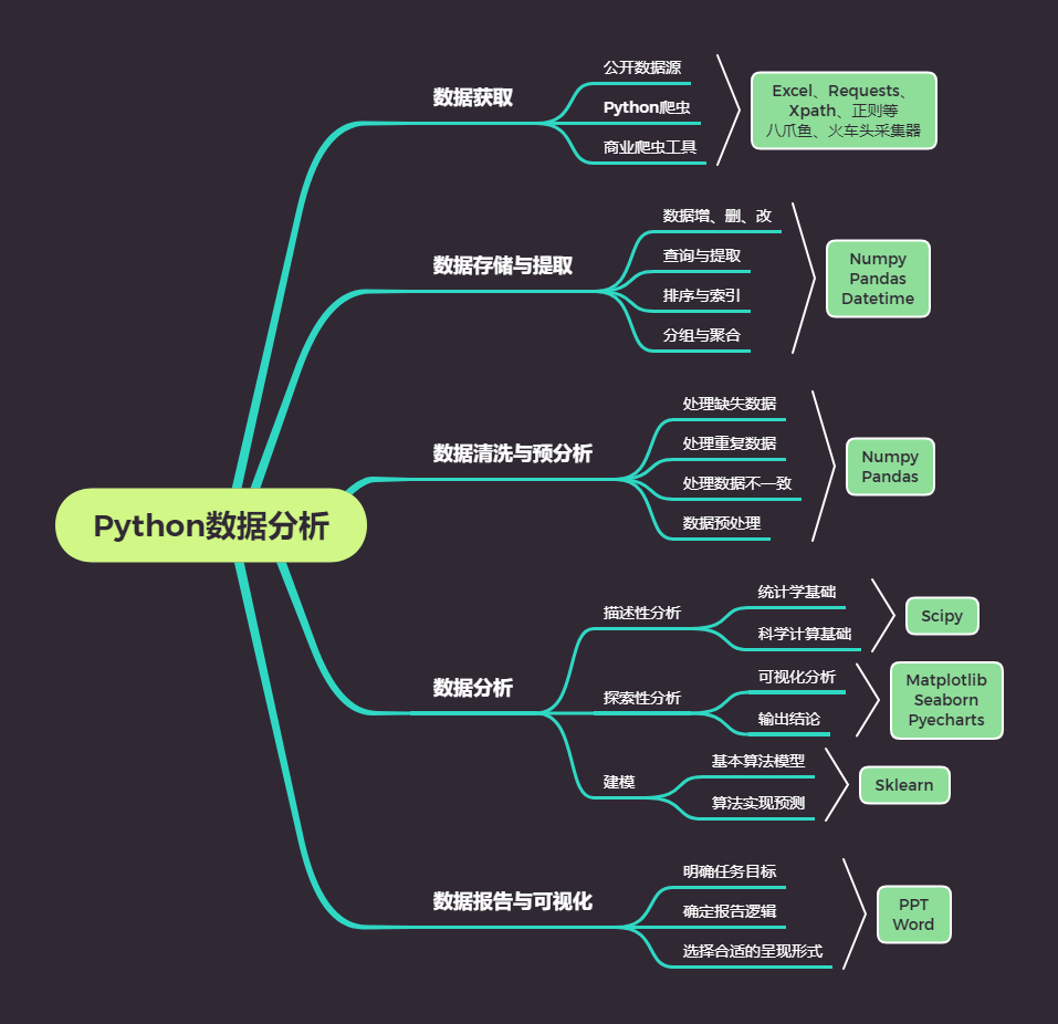 不过只是使用 Python 简单给你演示一下数据分析的魅力,后续我们其实还能做深入的数据挖掘。而且,实际上数据分析除了获取数据,存储数据,还需要会对数据进行预处理,提取,然后分析,统计,报告等操作。