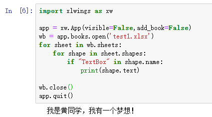 print(shape.text) # 一定要xlwings最新版本,老版本没有text方法