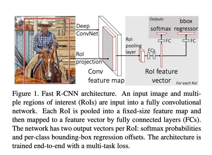 重复编码:由于候选区域存在重叠,模型需要重复进行重叠区域的特征图提取,计算冗余模型训练:由于特征抽取模型和区域的分类回归模型分开训练,无法进行端到端的模型训练,训练过程需要提取每个包含重叠区域的候选区域特征并保存用于分类和回归训练