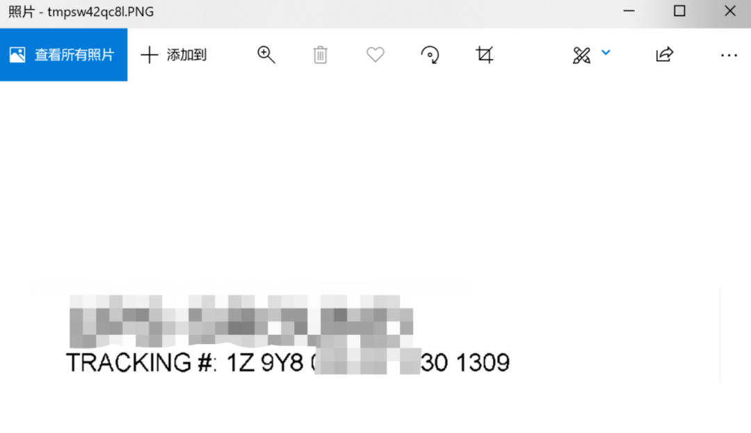 四个参数需要反复调试才能确定。首先提取 TRACKING# 部位需要的内容,经确定四个参数分别是 350 600 1350 730,尝试截取和预览图片:
