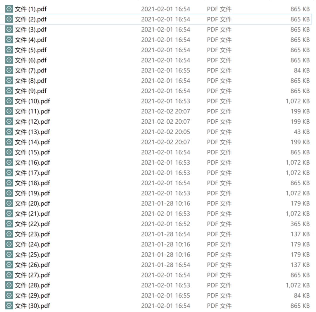 也就是需要根据每个PDF内容来批量重命名一大堆文件,最终效果如下