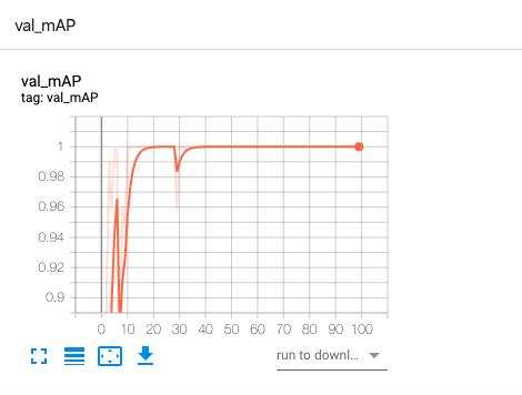 mAP 变化可以看到 loss 从最初的非常高下降到了很低,准确率也逐渐接近 100%。