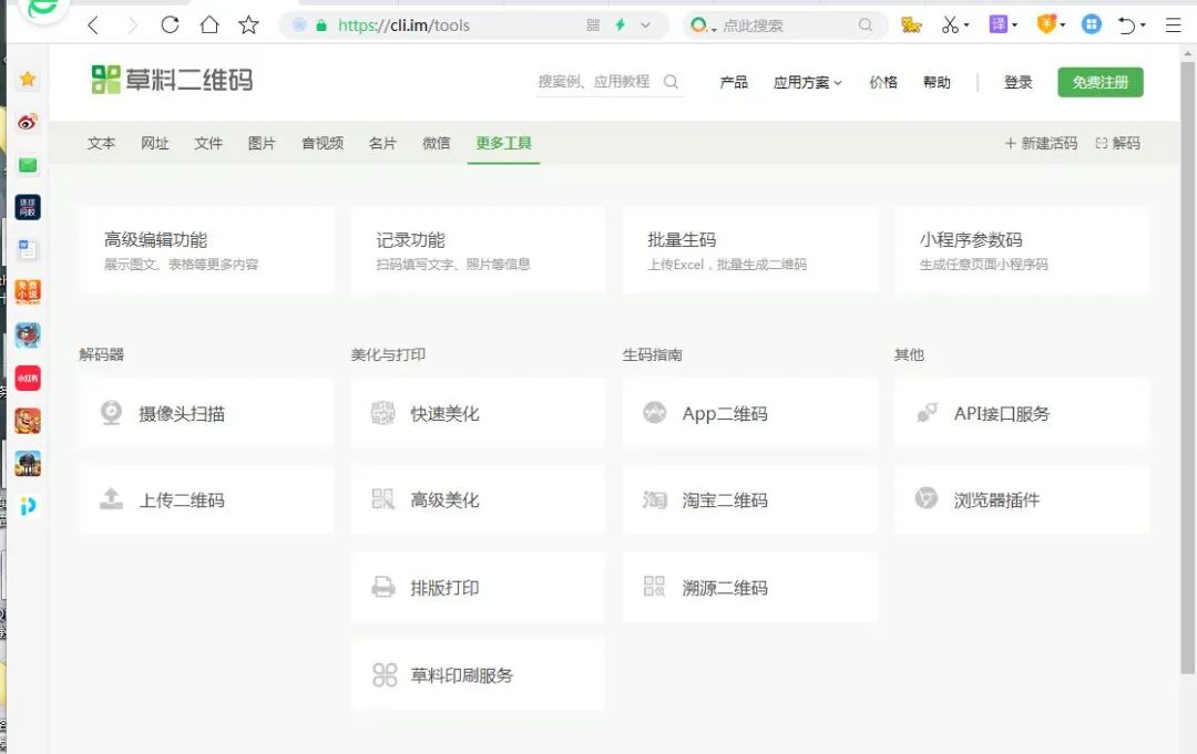 在这里我要分享一个二维码网址,算是知名度比较大的二维码在线生成工具:草料二维码。