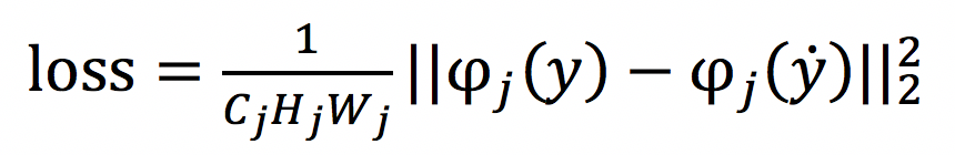 基于特征空间计算的欧式距离被称为感知损失(perceptual loss),令φ来表示网络,j表示网络的第j层,表示第j层的特征图的大小,感知损失的定义如下;