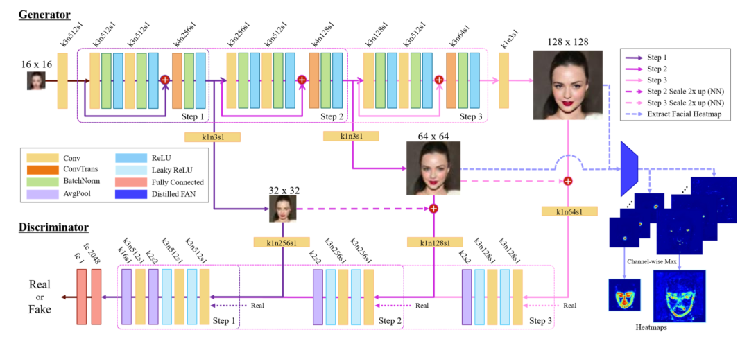 当然除此之外,任务相关的损失也常被添加进优化目标,比如人脸超分辨常使用人脸关键点任务作为辅助,需要添加关键点损失[11]。
