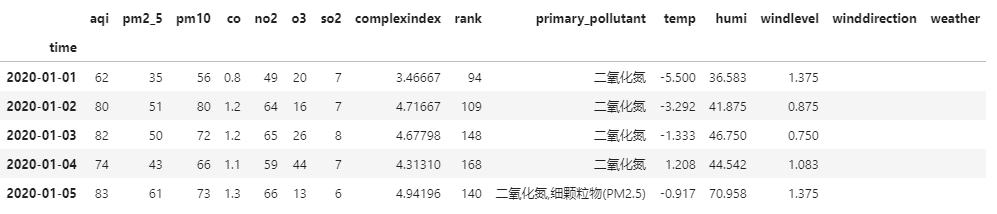 这里我们从akshare 库的接口直接获取北京市历史空气质量数据