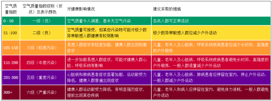 北京最近15个月空气质量AQI 4. 附 空气质量指数色卡对照表: