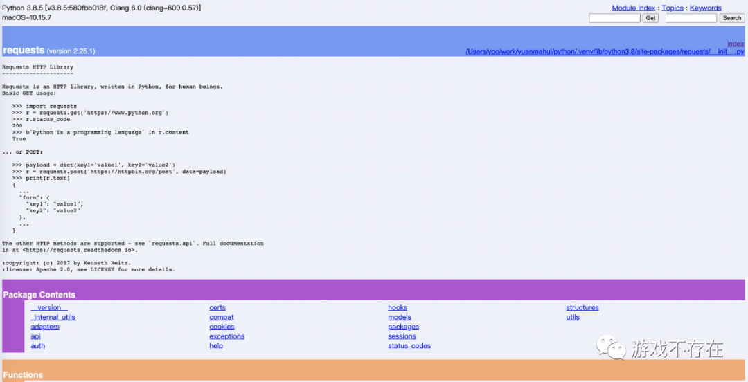 # python -m pydoc -p 8080 # 启动一个web服务 Server ready at http://localhost:8080/ Server commands: [b]rowser, [q]uit server> b