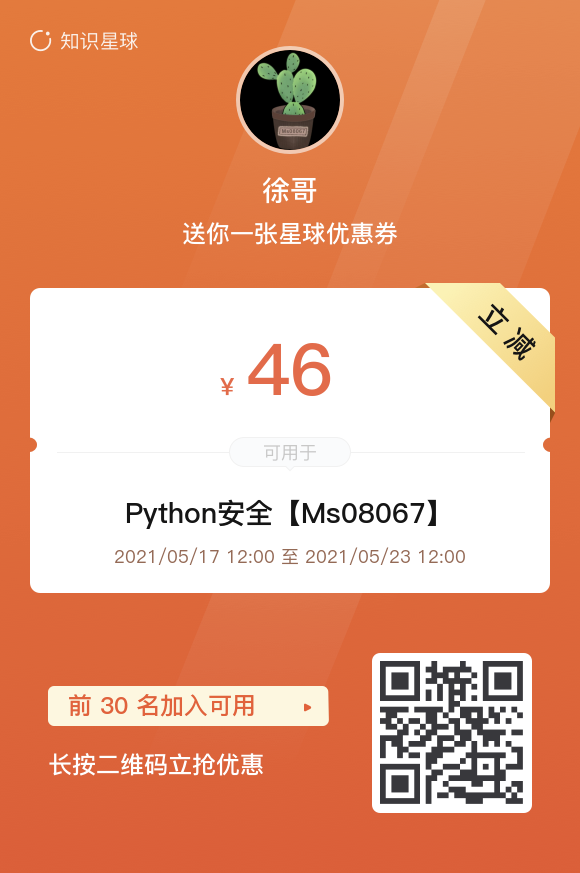 (已经在星球里的成员可继续免费学习“Python安全开发 2.0 计划,无需额外费用)