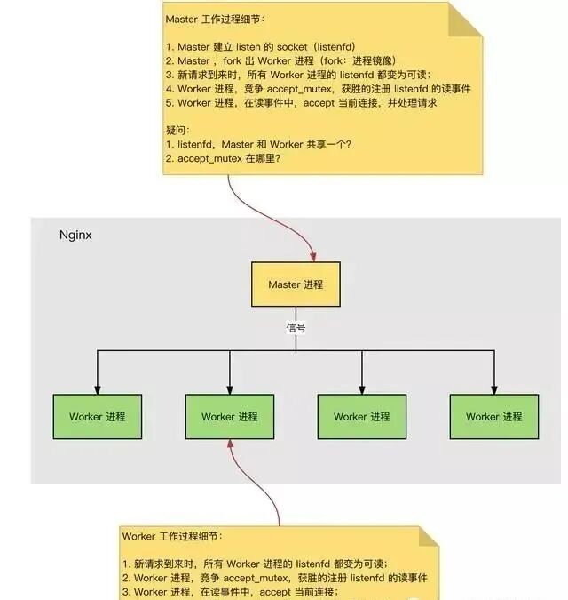 Nginx 是多进程模型,Worker 进程用于处理请求。