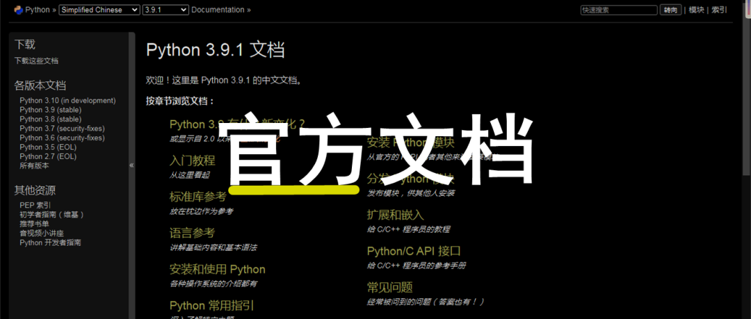 *声明:资料来源于Python官网,想要实时掌握文档更新情况,请到https://docs.python.org/zh-cn/3.9/查看,PDF版仅用于分享学习,侵删!