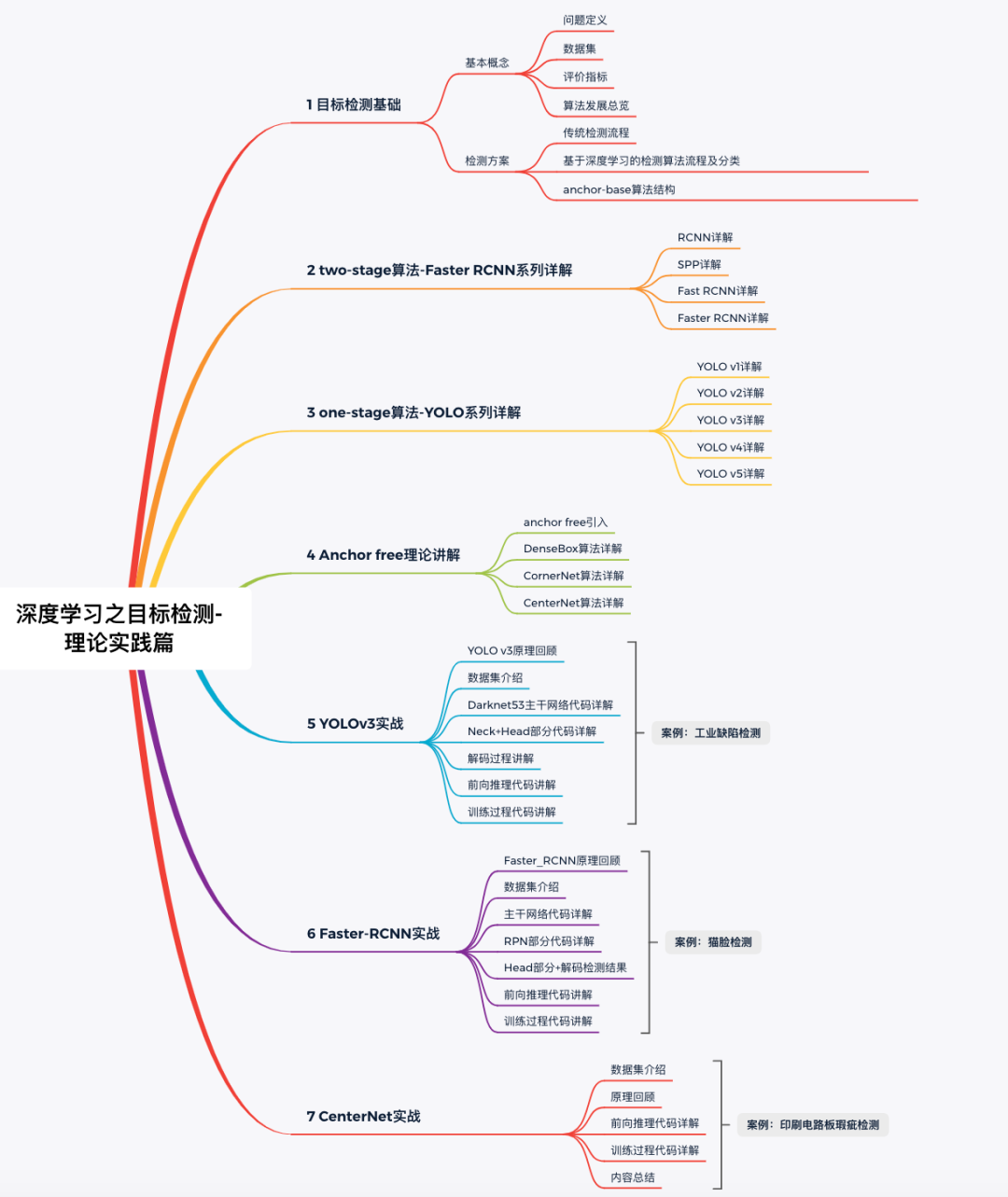 理论部分内容包括:目标检测相关基础,包括流程与评价指标,two-stage算法-Faster RCNN系列详解、one-stage算法-YOLO系列详解,Anchor-free算法系列详解(包括Densebox,CenterNet,CornetNet等);