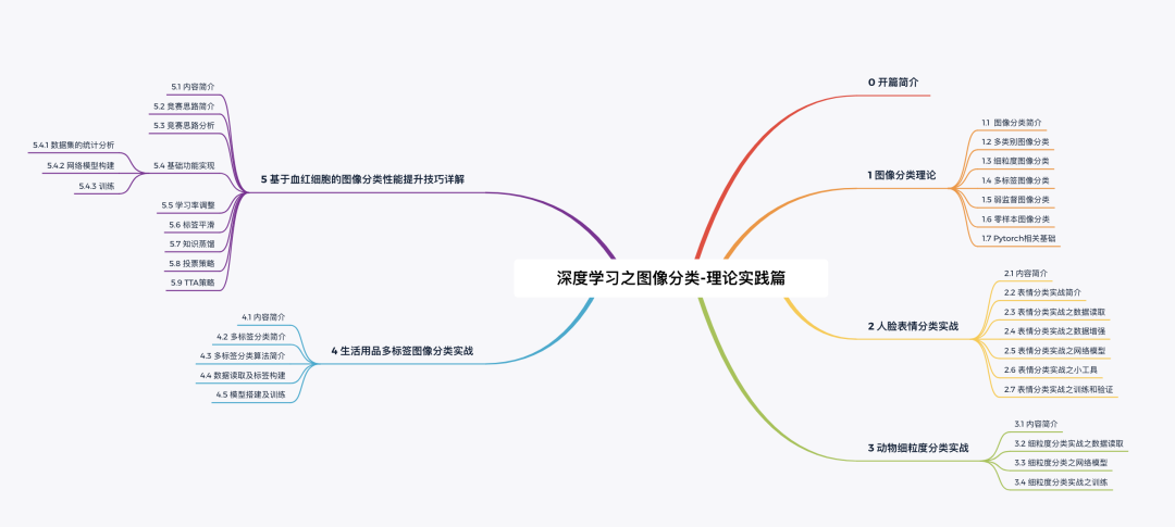 理论部分涵盖了深度学习之图像分类的各个研究方向,如图像分类简介、多类别图像分类、细粒度图像分类,多标签图像分类,弱监督图像分类,零样本图像分类等,既有足够的宽度,也具备有足够的深度。