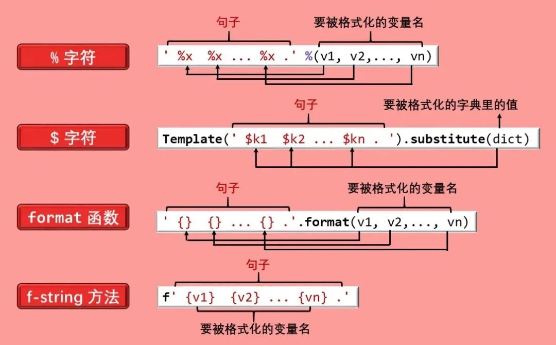 如果光看例子,那真是千奇百怪,但透过例子看本质,每种方法都有通用的语法格式,如下图总结。