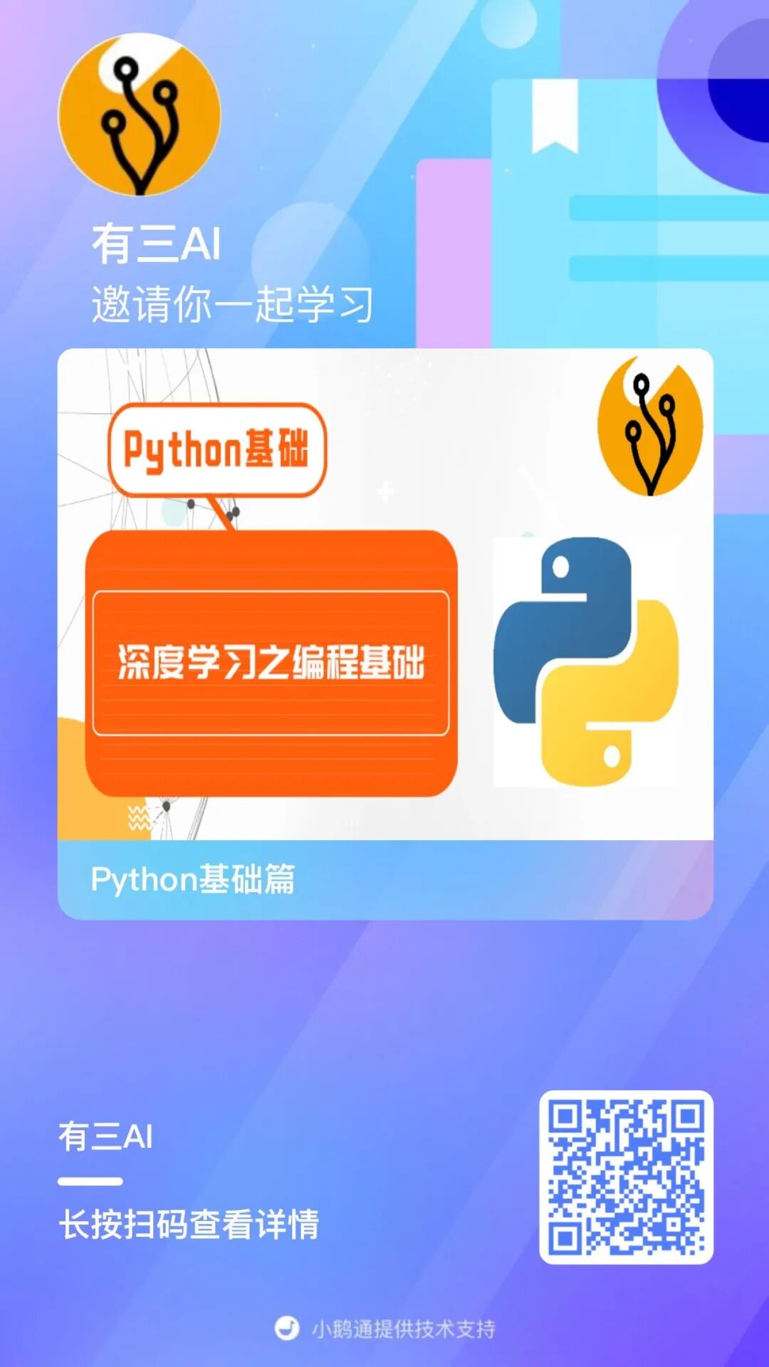 最后:有三AI CV春季划成员,如果需要学习本Python基础课程,由有三本人报销50%的学费,直接找我即可。