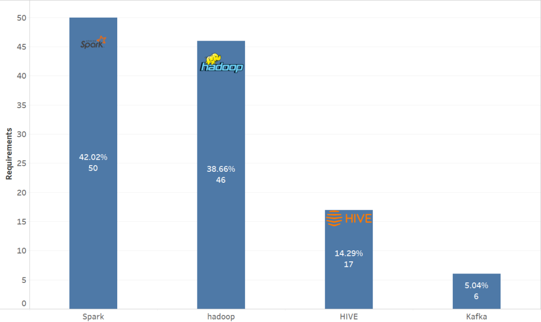 Apache Spark、Hadoop、Hive 和 Kafka 都是当前企业使用的流行技术,目前看起来,Apache Spark 和 Hadoop 拥有超越其他大数据技术的绝对优势。