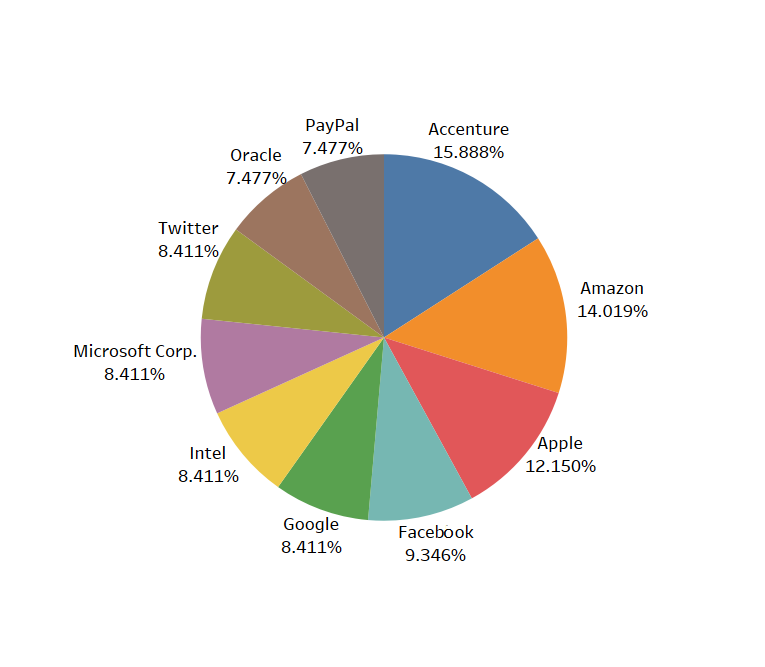 在数据科学家职位空缺方面,埃森哲在美国排名第一,其次是亚马逊、苹果和 Facebook。埃森哲是提供咨询和处理服务的爱尔兰跨国企业,其应用程序服务、数据和分析、技术创新、商业智能、自动化等业务都需要大量熟练的数据科学家和工程师。此外,有很多社交媒体企业、电子商务企业,或 PayPal 和 Google Pay 之类的支付处理平台也在积极招聘,这些企业每天都有很高的用户使用量,数据流可能达到数千 PB。