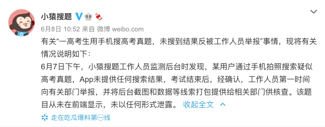 0、小猿搜题回应高考生传题事件