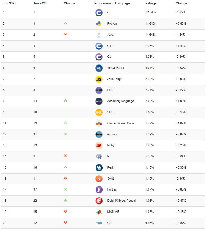 TIOBE 公布了 2021 年 6 月的编程语言排行榜。