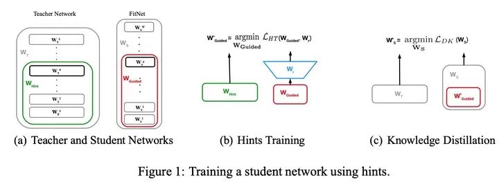 到目前为止,知识蒸馏技术已经考虑了Student网络与Teacher网络有相同或更小的参数。这里有一个洞察点是,深度是特征学习的基本层面,到目前为止尚未考虑到Student网络的深度。一个具有比Teacher网络更多的层但每层具有较少神经元数量的Student网络称为“thin deep network ”。