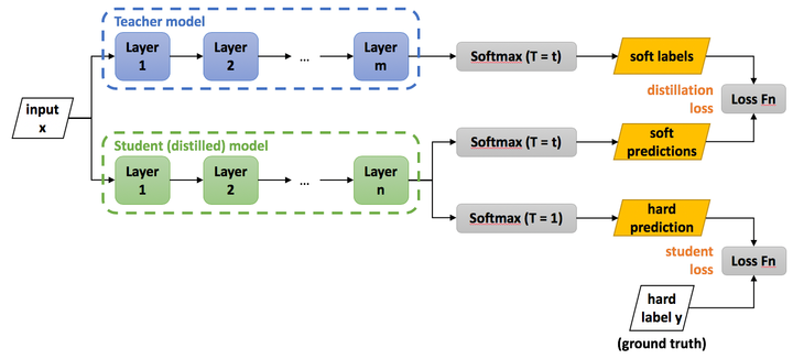 知识蒸馏训练的具体方法如下图所示,主要包括以下几个步骤: