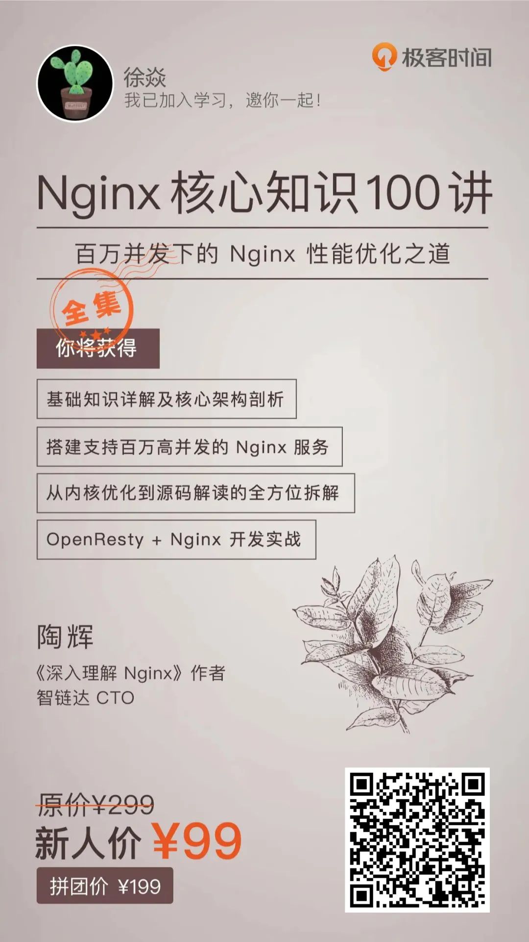 像陶大这样,能带着从 0 到 1 构建知识体系的老师不多见。想彻底拿下 Nginx 的朋友,这个课一定要仔细看,反复学。