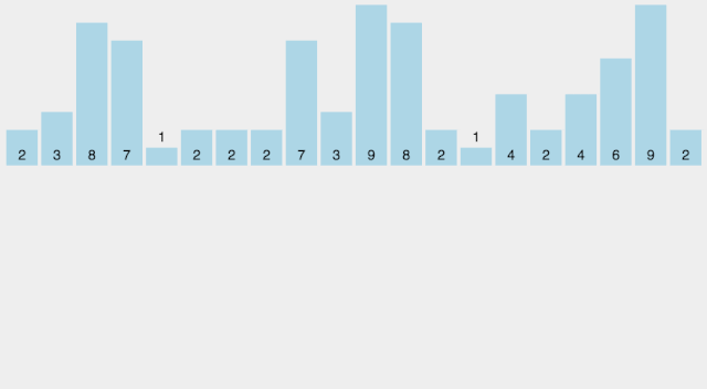 - 持续每次对越来越少的元素重复上面的步骤,直到没有任何一对数字需要比较。