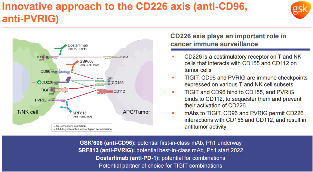 此次合作使葛兰素史克成为唯一一家布局CD226免疫检查点通路三个协同靶点(TIGIT、CD96 和 PVRIG)疗法公司。