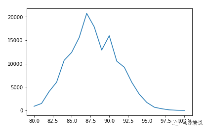 reviews ['points'] .value_counts ().sort_index ().plot .line ()