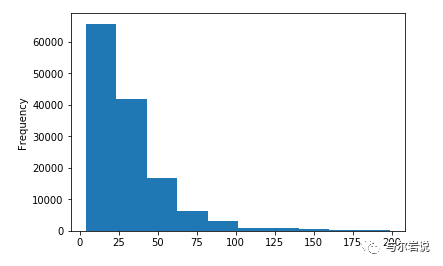 reviews[reviews['price' ] < 200 ]['price '].plot.hist ()