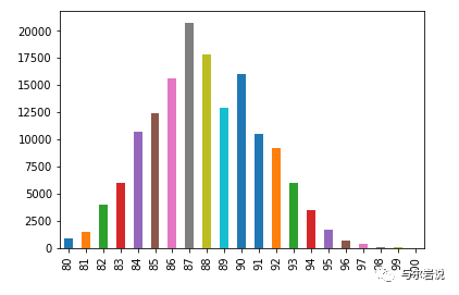 reviews ['points'] .value_counts ().sort_index ().plot .bar ()