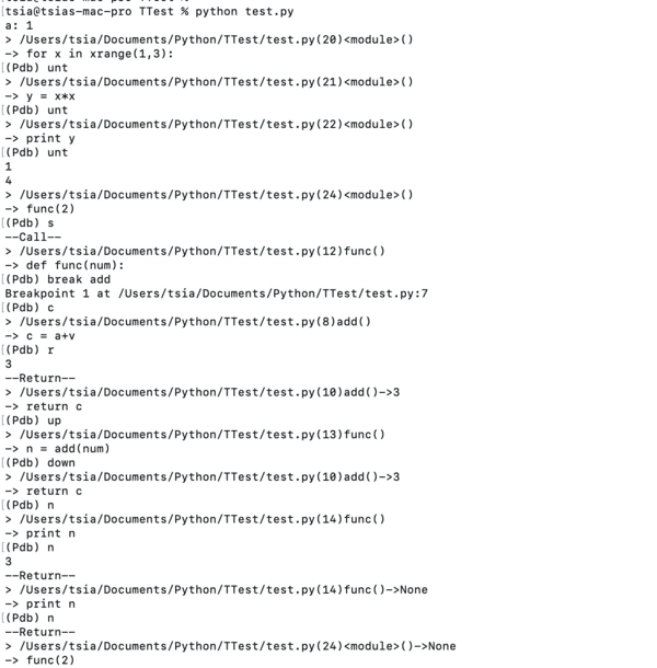命令行中执行Python test.py,Python代码实际是从第一行开始执行的,但因为pdb.set_trace()是在__main__中调用的,所以实际是从set_trace的下一行才挂载到pdb的跟踪函数,开始frame的中断控制。