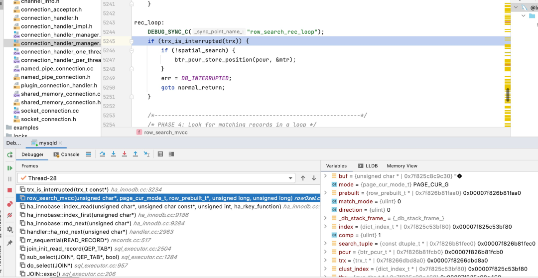 * frame frame match_mode=0, direction=0) at row0sel.cc:5245:6frame frame frame frame 3frame frame frame end_of_records=false) at sql_executor.cc:1284:14frame frame frame result=0x00007f825e379cf8, added_options=0, removed_options=0) at sql_select.cc:191:21 frame all_tables=0x00007f825e3796b0) at sql_parse.cc:5155:12frame frame frame frame frame connection_handler_per_thread.cc:313:13frame frame frame