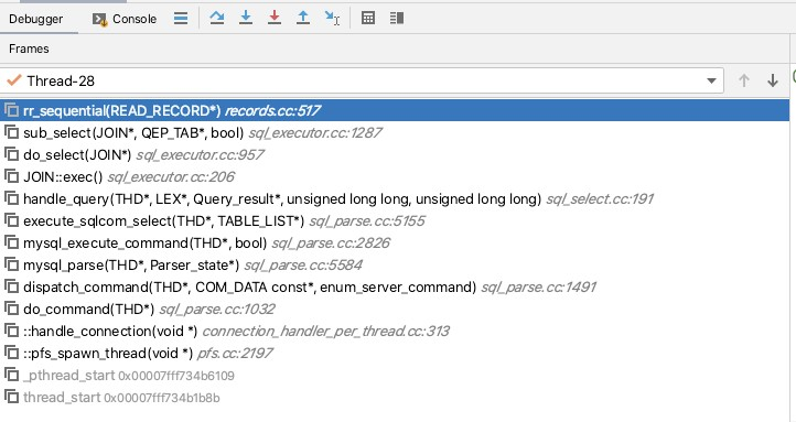 frame #17: 0x0000000105a23976 mysqld`::handle_connection(arg=0x00007fcce5307d10) atconnection_handler_per_thread.cc:313:13frame #18: 0x00000001063ee74c mysqld`::pfs_spawn_thread(arg=0x00007fcce2405030) at pfs.cc:2197:3 frame #19: 0x00007fff71032109 libsystem_pthread.dylib`_pthread_start + 148frame #20: 0x00007fff7102db8b libsystem_pthread.dylib`thread_start + 15