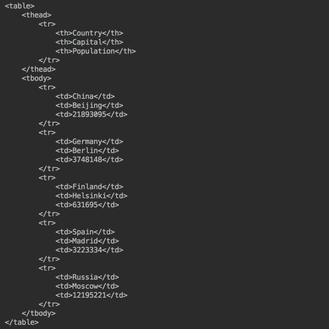 让我们创建一个国家城市的人口表格。