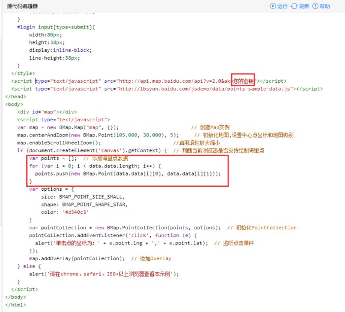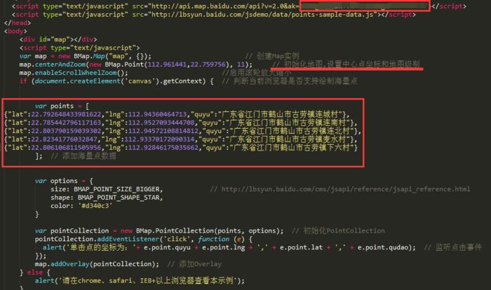 二、使用百度地图API官网的html例程,修改数据部分,实现呈现效果