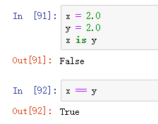- is:用于判断两个变量是否是同一个对象,如果两个对象是同一对象,则返回True,否则返回False。要与== 区别开来,使用==运算符判断两个变量是否相等。