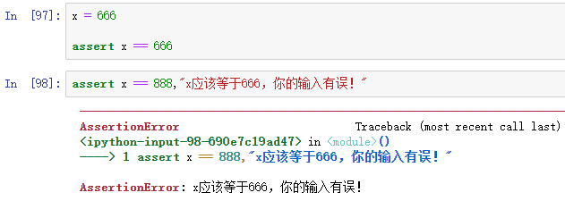 调试代码时,使用assert关键字。主要用于测试代码中的条件是否为True,如果为False,将引发AssertionError。x = 666