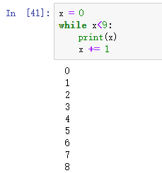 while:用于定义while循环,while循环将继续,直到while的条件为False。